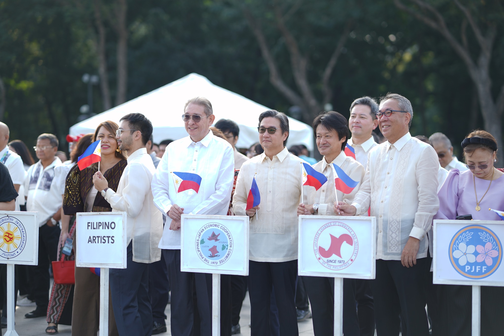In celebration of National Arts Month, members of the Philippines-Japan Economic Cooperation Committee (PHILJEC), led by Chairman Richard Albert I. Osmond, and Co-Chairman Alfred V. Ty, participated in the Stop and Salute Flag Raising Ceremony held at Rizal Park, Luneta on February 03, 2025.